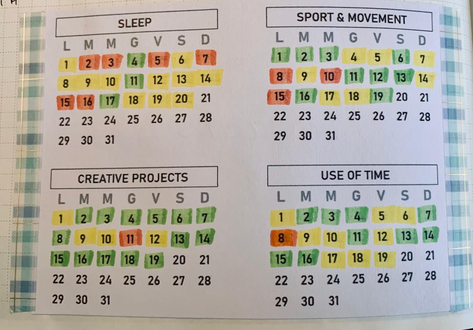 That’s a very normal cyclical thing: on a regular basis, I get the inspiration to renew my habit tracking system. I adjust the whole thing and follow through for quite a while, even for a few months—then life gets in the way and I let everything go… Until a new surge of inspiration takes a hold of me.